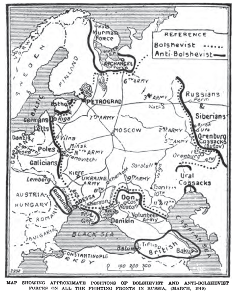 ⁹³The American command’s most difficult problem in Russia was not relations with its Allies nor the sporadic clashes with the Bolsheviks. Rather it was in maintaining American morale. … Generally, both the troops and their leaders were confused about the Allied purposes in intervening in Russia. … Consul Poole, who became Chargé d’affaires at Archangel after he left Moscow, requested a firm statement of policy by the United States concerning the Archangel expedition because American troops were becoming suspicious of their continued presence in Russia. Poole recommended that the troops be retained to protect Russians who had cooperated with the intervention forces from retribution at the hands of the Bolsheviks. After news of the Armistice reached the troops at Archangel, Poole attempted to boost morale in a 1918 Thanksgiving speech to the men. He told them, not quite accurately, that they were protecting the one spot in Russia free from the Bolshevik curse. When one of the soldiers asked why they were still in Russia after the Armistice, Poole replied feebly that “President Wilson has thought of you and in good time will tell you and the rest of us what he expects each to do in order to hold steady the light of our forward-looking democracy.”The North Russian Intervention proved extremely unpopular among the war-weary populace of the Allied countries, particularly after the Armistice of November 1918. Unable to hold the flanks in April 1919, along with mutinies in the ranks of the White forces, caused the Allied Powers to leave. The White Russian Northern Army was left to face the Red Army alone, and it quickly collapsed when the Bolsheviks launched a counter-offensive in December 1919. Many soldiers capitulated, and the remnants of the Army were evacuated from Arkhangelsk in February 1920, shortly before the Bolsheviks entered the city. The White Provisional Government of the Northern Region ceased to exist. White commander Yevgeny Miller carried on to the end with a number of other White officers including Grigory Chaplin, but had to flee at the last minute with an icebreaker when the Red army entered Arkhangelsk in February 1920.