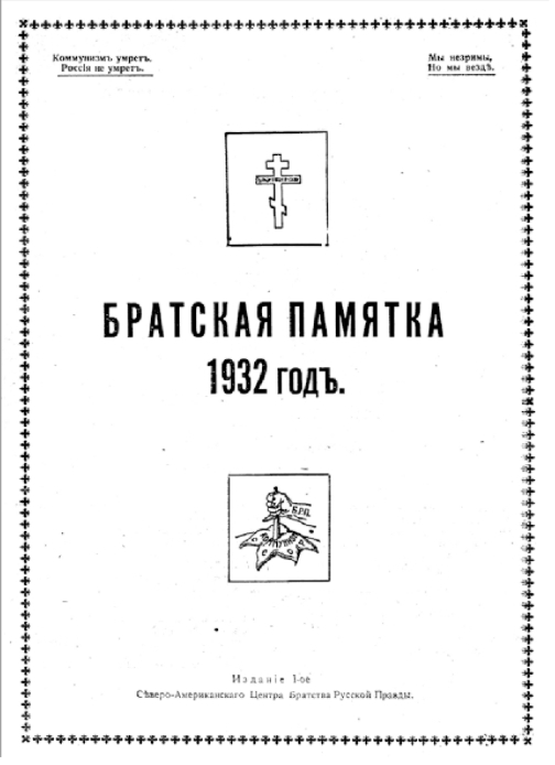 The Brotherhood of the Russian Truth (1924–1933)When funding from Wrangel ceased in 1924, Georgy Leuchtenberg took over. A new group of leadership turned the propaganda journal into a genuine activist organization called the Brotherhood of the Russian Truth (Bratstvo Russkoi Pravdy, BRP).