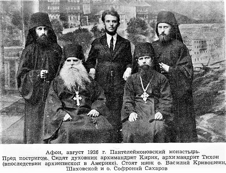 At the same time in the Panteleimmon Monastery on Athos on the blessing of the Bishop of Veniamine (Fedchenkov), Shakhovskaya was tonsured in a monk named John in honor of the Apostle John the Bogoslov.